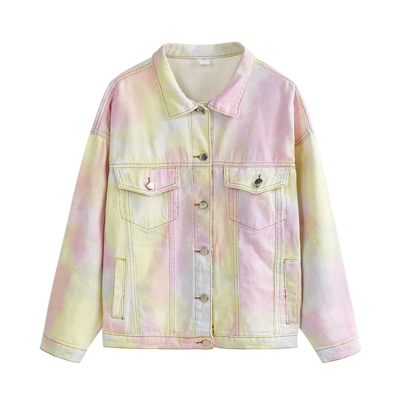 Lovely Kawaii Tie Dye Gradiente Pastel Rainbow Denim Jacket SS1943