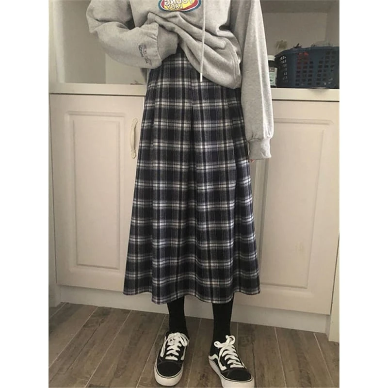 M-6XL Plus Size Plaid Mid-Calf A-LINE High Waist Skirt BE367