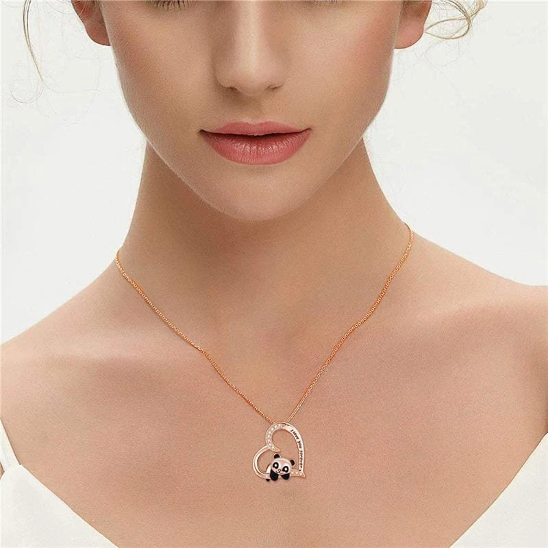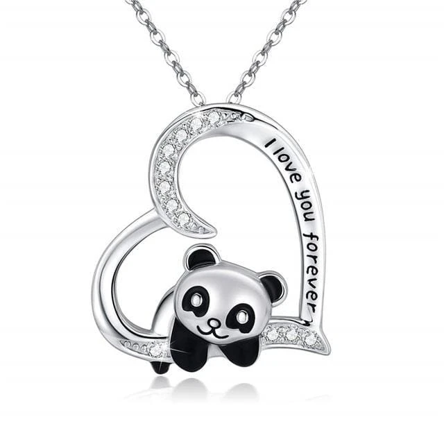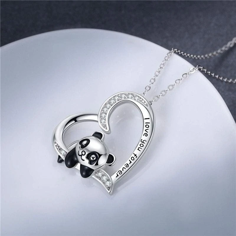 Panda Bear Heart Shape Zircon Necklace EG15853