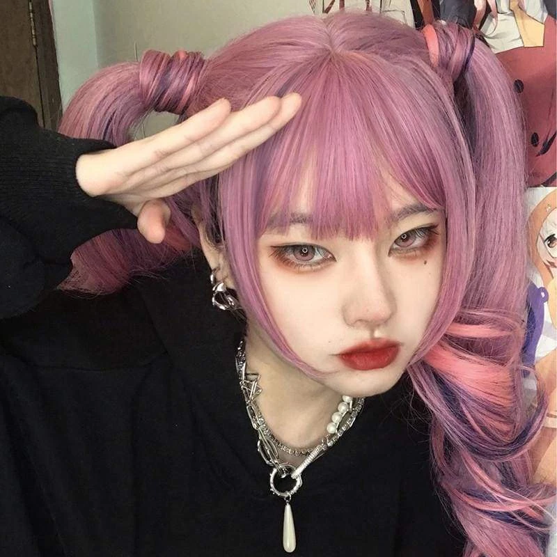 Pink Purple Mixed Color Long Curly Wig EE0715
