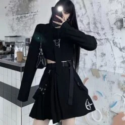 Punk Grunge Gothic Black Suit Blouse Skirt Set EG394