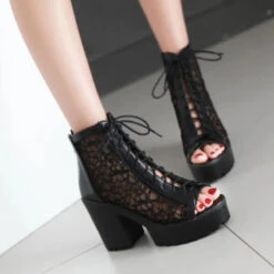 Gothic Lace See Thru Peep Toe Platform Sandals EG0494