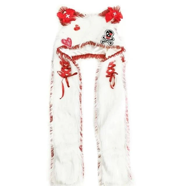 Punk Metal Cat Ear Plush Warm Windproof Cap Scarf BE095