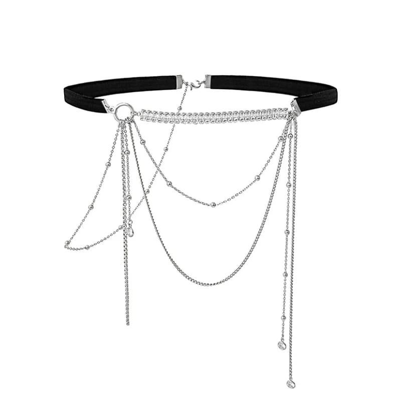 Fashion Design Black Elastic Belt Choker For Women Girls Trendy Delicate Zircon Tassel Necklace Party Jewelry Gifts