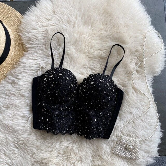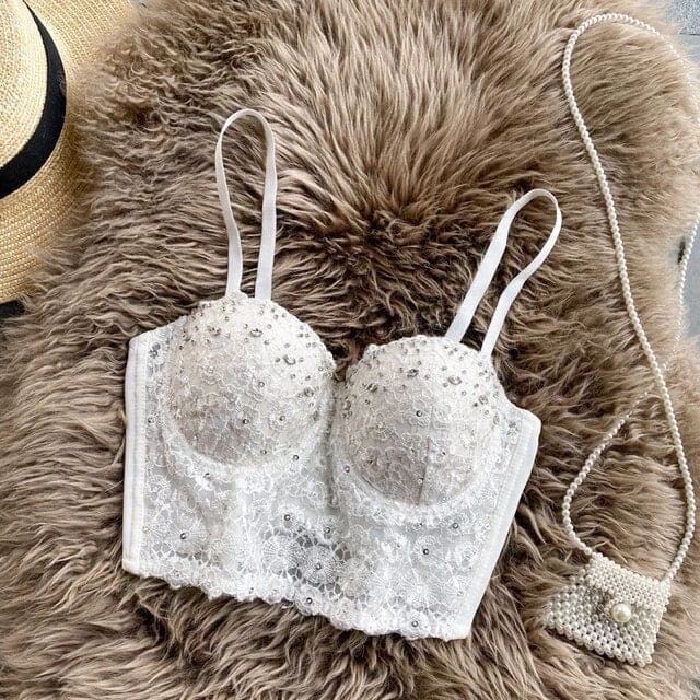Strap Beading Bling Lace Top Corset Underwear BE246