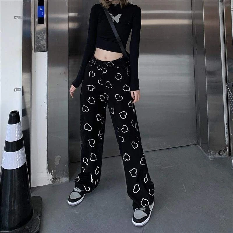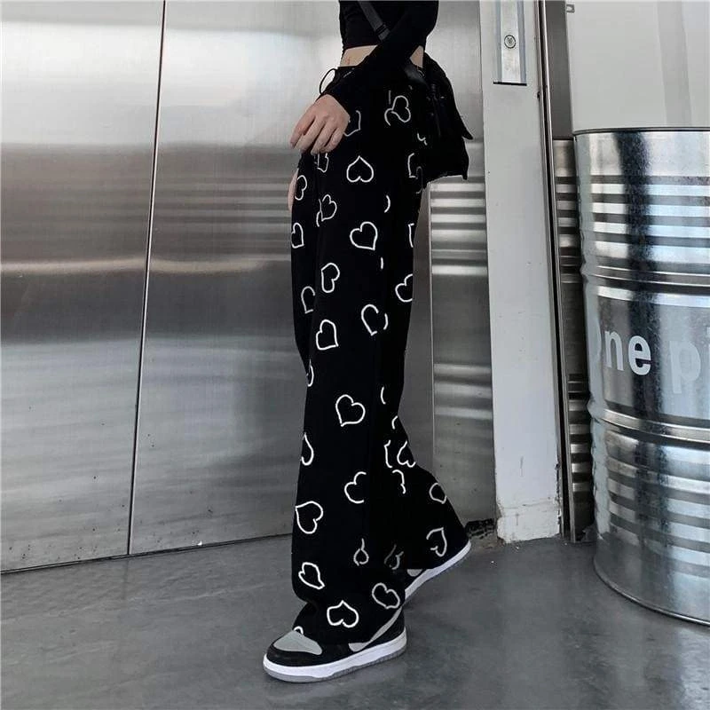Trendy Casual Street Style Love Hearts Printed Pants SS2100