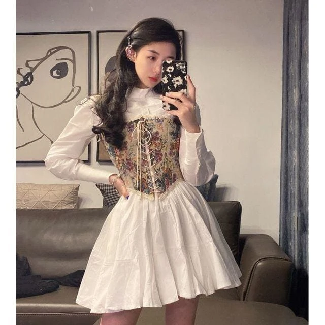 Vintage Kawaii Dress Elegant Print Floral Bandage Mini Dress BE150