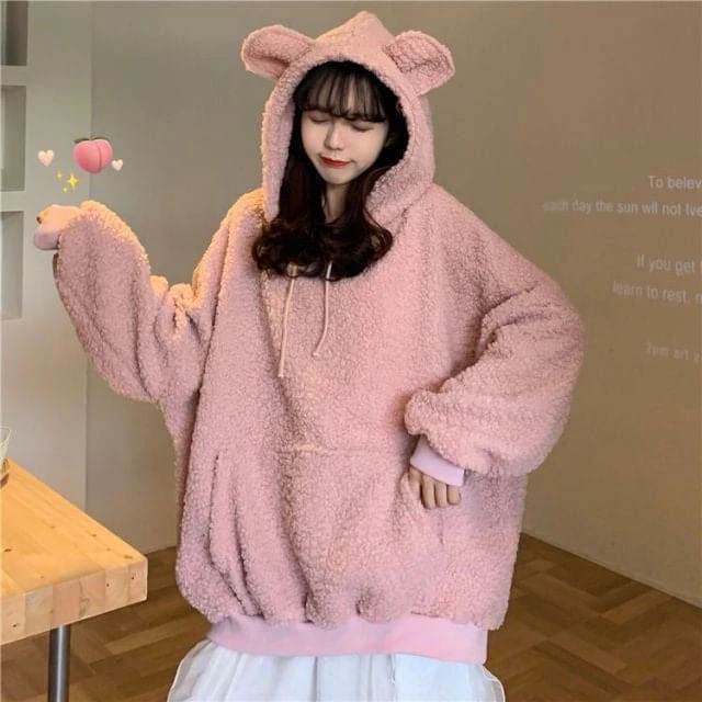 XL-4XL Plus Size Black/Pink Kawaii Bear Fluffy Hoodie BE384