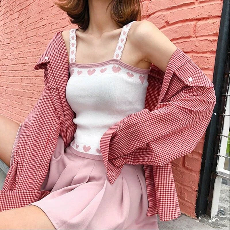 Kawaii Heart Tank Crop Top Love Sweet Knitted Vest BE204